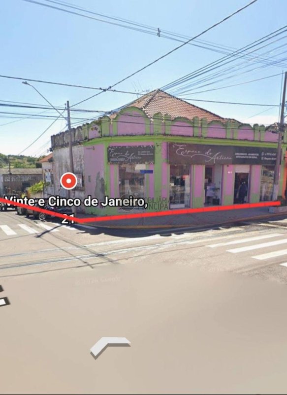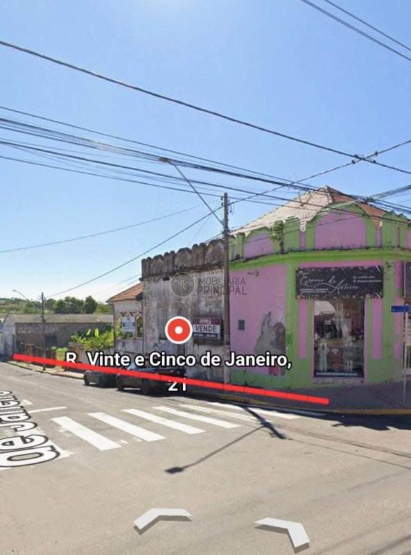 O imóvel possui uma casa, cuja parte voltada para a rua principal, estão locadas para lojas, descendo a rua 25 de janeiro tem a casa e um amplo terreno.